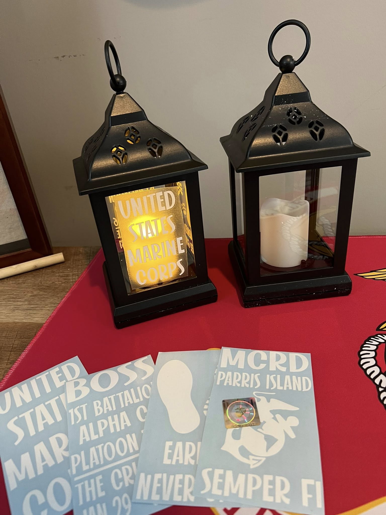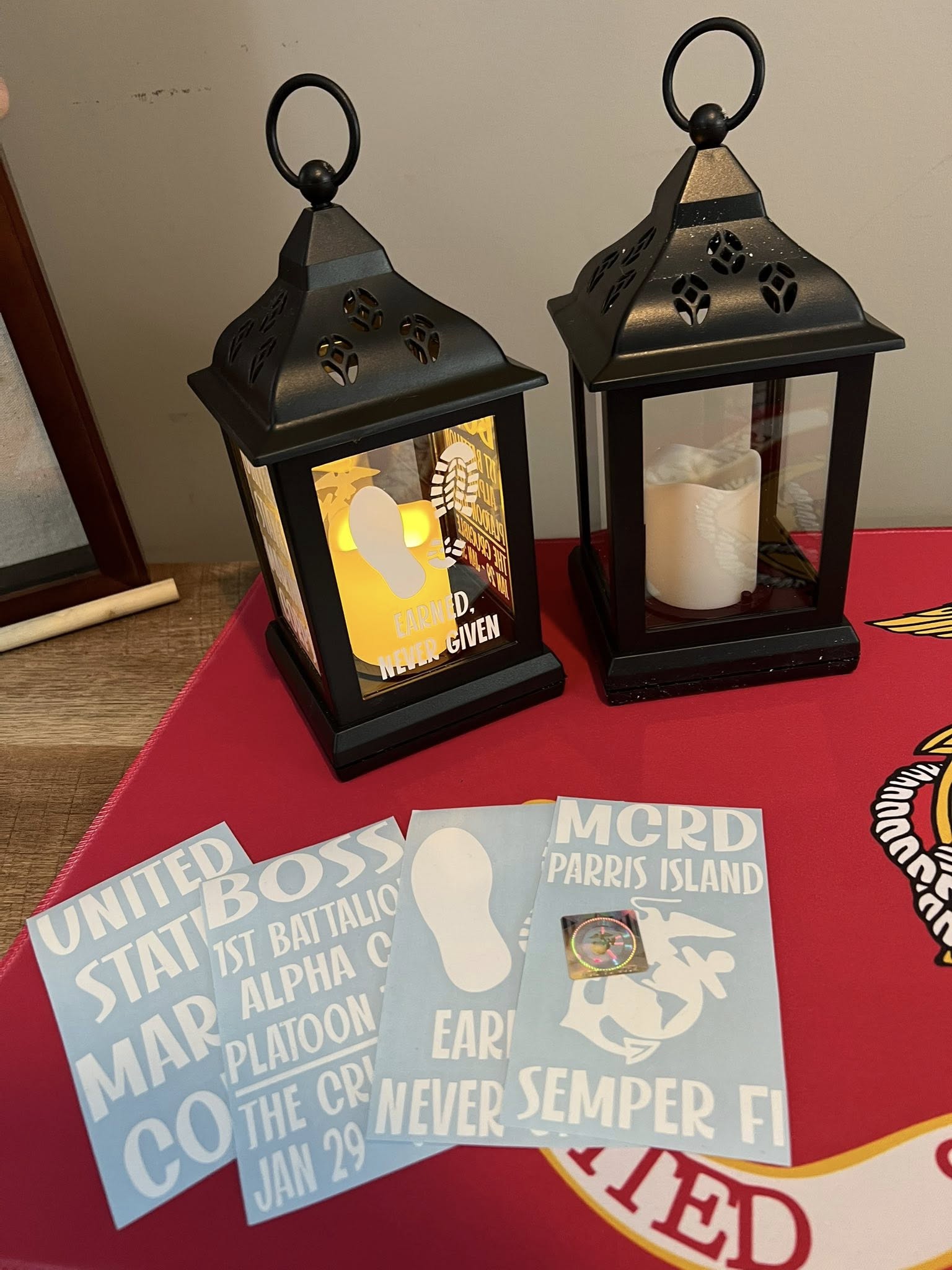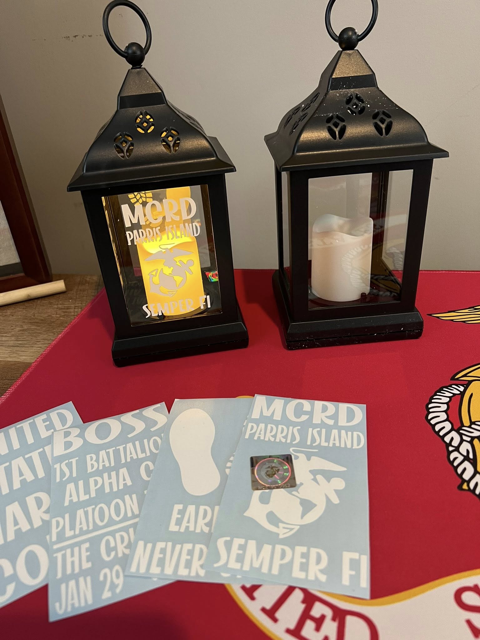 DIY CRUCIBLE LANTERN STICKERS - MCRD PARRIS ISLAND OR MCRD SAN DIEGO - FREE PERSONALIZATION - THESE WILL SHIP WITHIN 2 WEEKS IF ORDERED WITHOUT SHIRTS. IF ORDERED WITH SHIRTS, THEY WILL SHIP IN 3 WEEKS. PLEASE ALLOW 3-5 DAYS FOR TRANSIT.